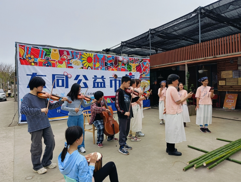 “‘老子学堂’的牌匾,是我们老师和学员一起用麻绳和扣子拼出来的。”据介绍,自己动手DIY,循环利用,是共生关怀农场的另一特点。在最近的公益市集上,一些学员在露天舞台上表演自己拿手的文艺节目,一些孩子家长动手做了雪花牛扎酥等点心,还有一些学员采摘了自己参与种植管理的蔬菜水果,而附近村民和网络上闻讯而来的志愿者也纷纷摆摊助阵……最后,大家还一致决定,把当天营收的10%捐给大同公益社区基金,以支持这一公益形式的后续发展。