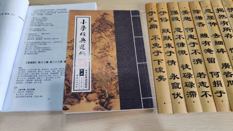 “自然抚慰人的物质世界,传统文化则点亮人的精神世界。”黄绎霖介绍说。前阵子,明日公益组织创办的“老子学堂”在阿林有机农场开学。每周二至周五,早上7点至8点半,共生关怀农场成员会来到课堂听一个半小时的传统文化知识。从老子的《道德经》到诸葛亮的《诫子书》,从“道法自然”到“淡泊明志、宁静致远”,来自社会各行各业、各个年龄阶段的社区成员坐在一起听课,然后再展开交流分享。
