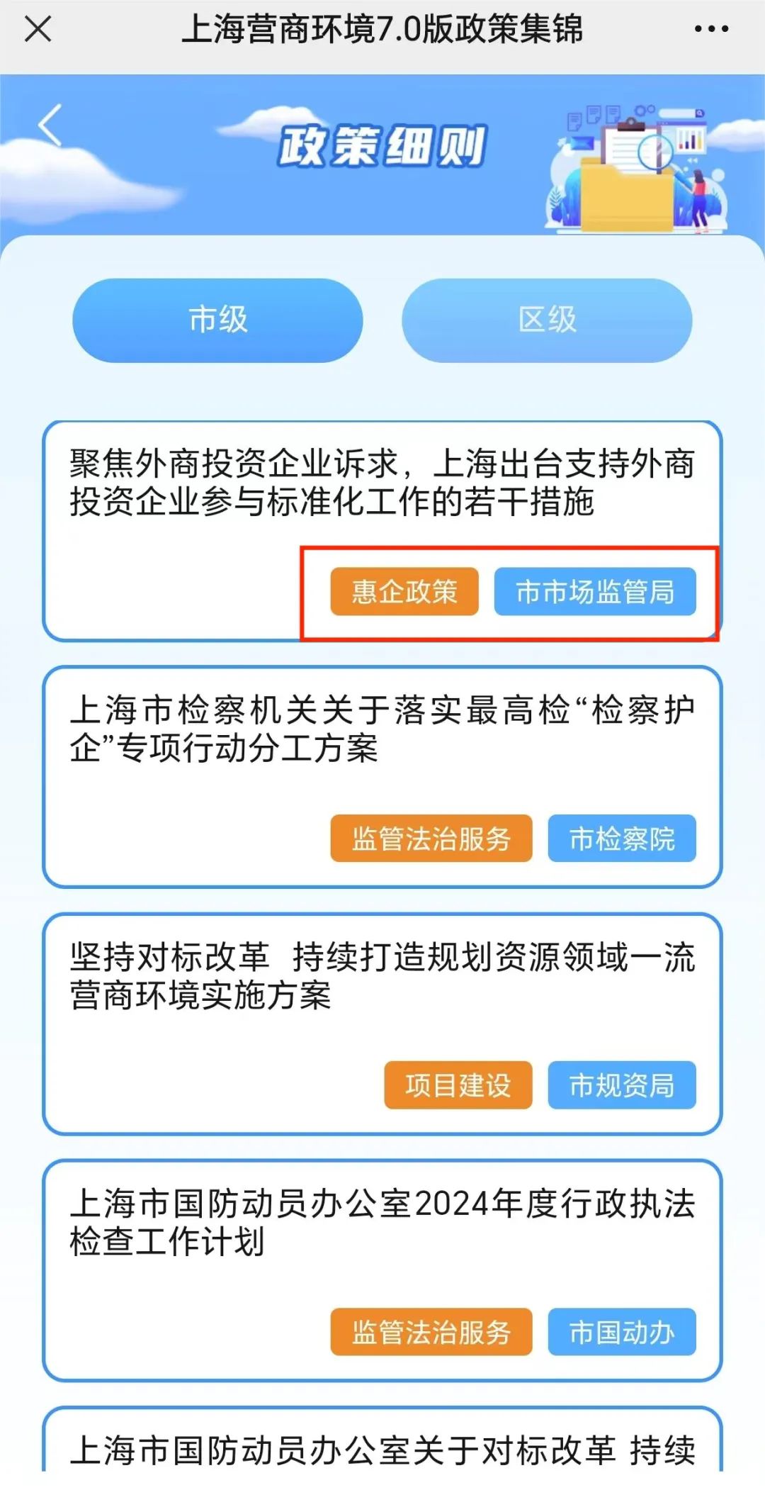 其中,市级政策细则按照制定部门及企业高频办事事项进行了标记,方便大家快速查找所需内容。