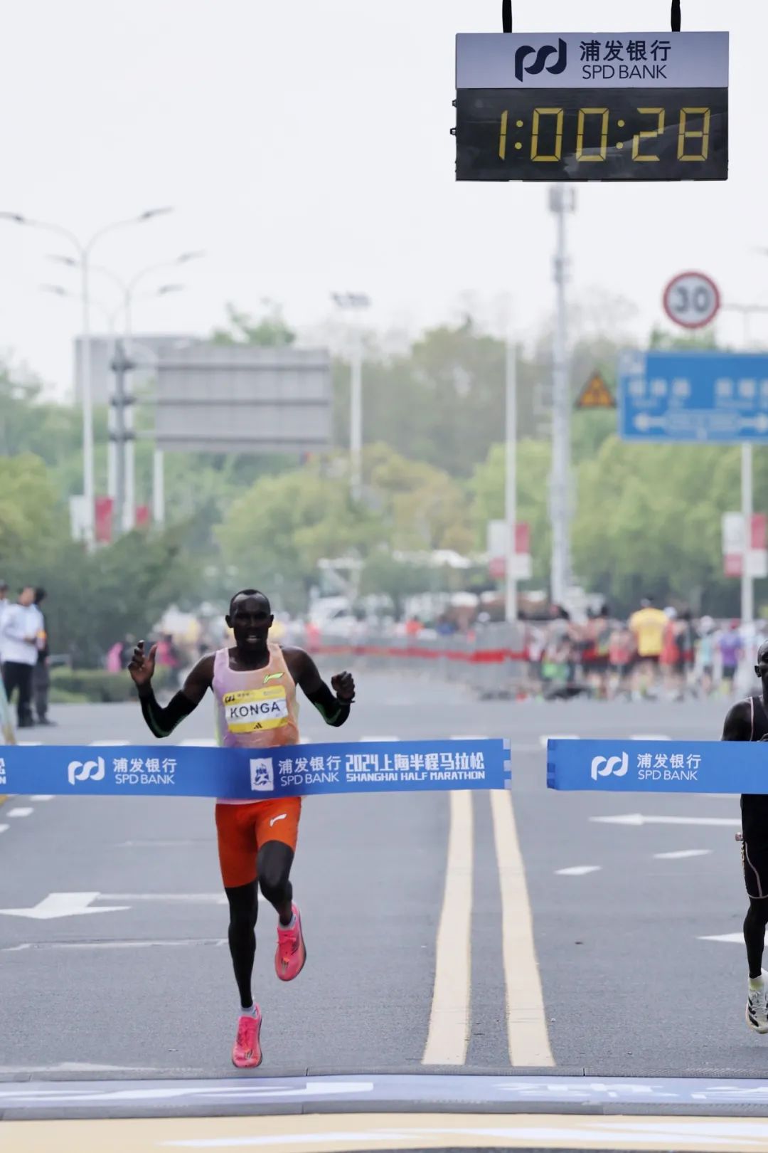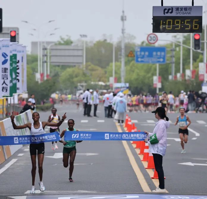 赛事的终点依然设在浦发银行东方体育中心,令人惊喜的是,今年男、女组别的赛会纪录均被改写。来自肯尼亚的朗塞尔·基普科里尔·孔加以1小时00分29秒的成绩夺得男子组冠军,来自坦桑尼亚的玛格达莱娜·克里斯平·肖里则以1小时09分57秒的成绩摘得女子组桂冠。经过3小时15分钟的等待,2024浦发银行上海半程马拉松迎来关门时刻,经组委会芯片计时统计数据显示,本次赛事完赛率达99.06%。