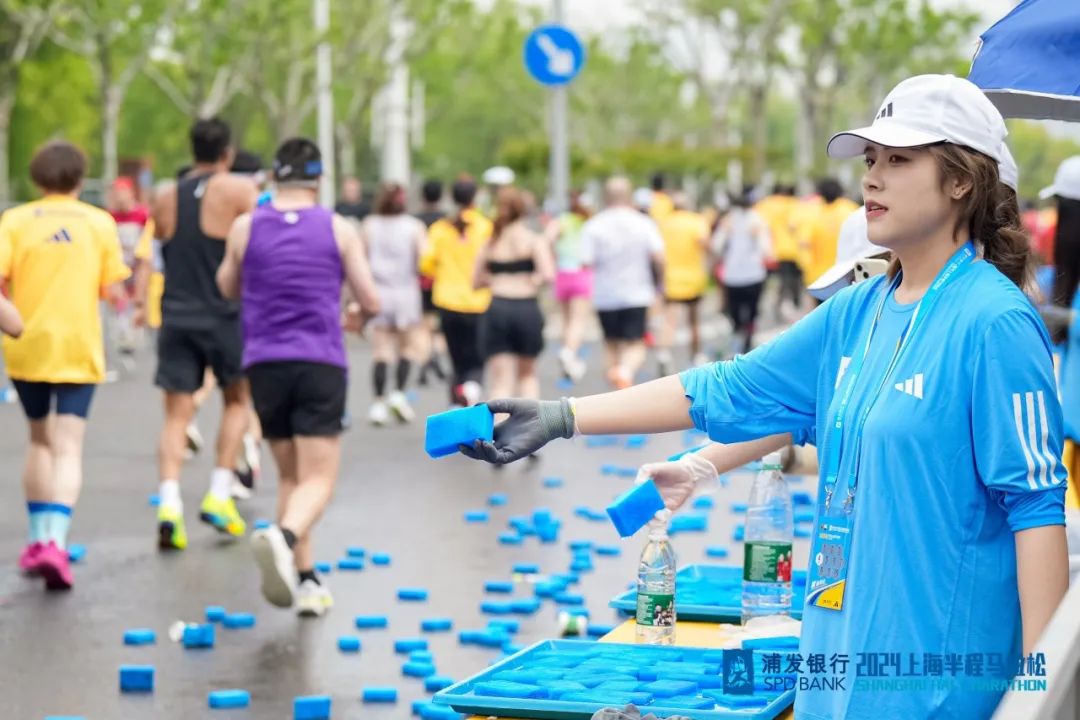 今年,赛道沿途依然按相关要求设置了各式补给站,3公里处设有饮水站;自5公里起,每5公里设置饮料/饮水站,给予跑者水分及电解质的补充;赛道7.5公里、12.5公里、17.5公里处设置饮水/用水站,跑者可以通过用冷水浸泡的海绵及时降温;赛道沿途共设置4个能量补给站,在10公里、20公里处提供都乐香蕉,12.5公里处提供SiS能量胶,20公里的补给站则准备了明治巧克力,给予跑者能量补充。组委会同时充分考虑到跑者的参赛体验,在赛道9公里、14公里、18公里处配备了3处冰站,在8公里、12公里、14公里、18公里、20公里处设置了5处喷淋站,16公里、19公里放置了2辆雾炮车,参赛者可以取用适量冰块,置于后脑勺及后脖颈处进行物理降温,以达到迅速恢复体力的效果。