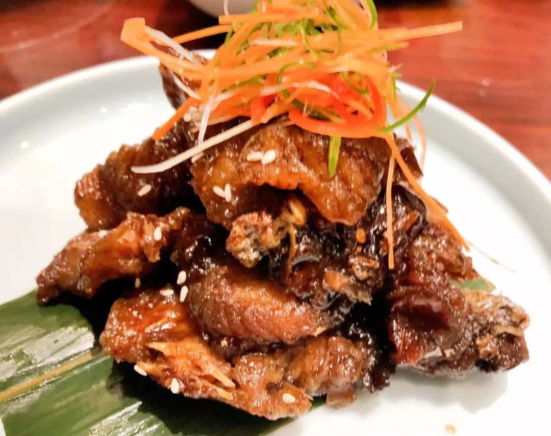这道菜因上桌后盘中油还在噼啪作响而得名。制作响油鳝丝除掌握烹调技术关键外,还须上桌及时。