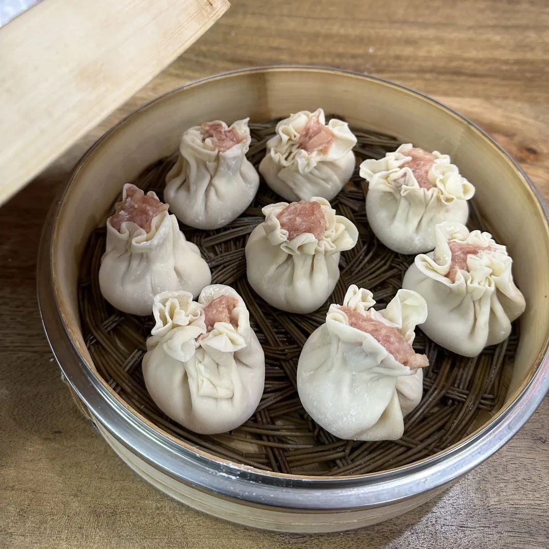 烧卖皮用擀面杖手工擀制,以当季新鲜的春笋、鲜肉和秘制猪皮冻为馅料,上笼蒸熟后咬一口鲜嫩多汁。