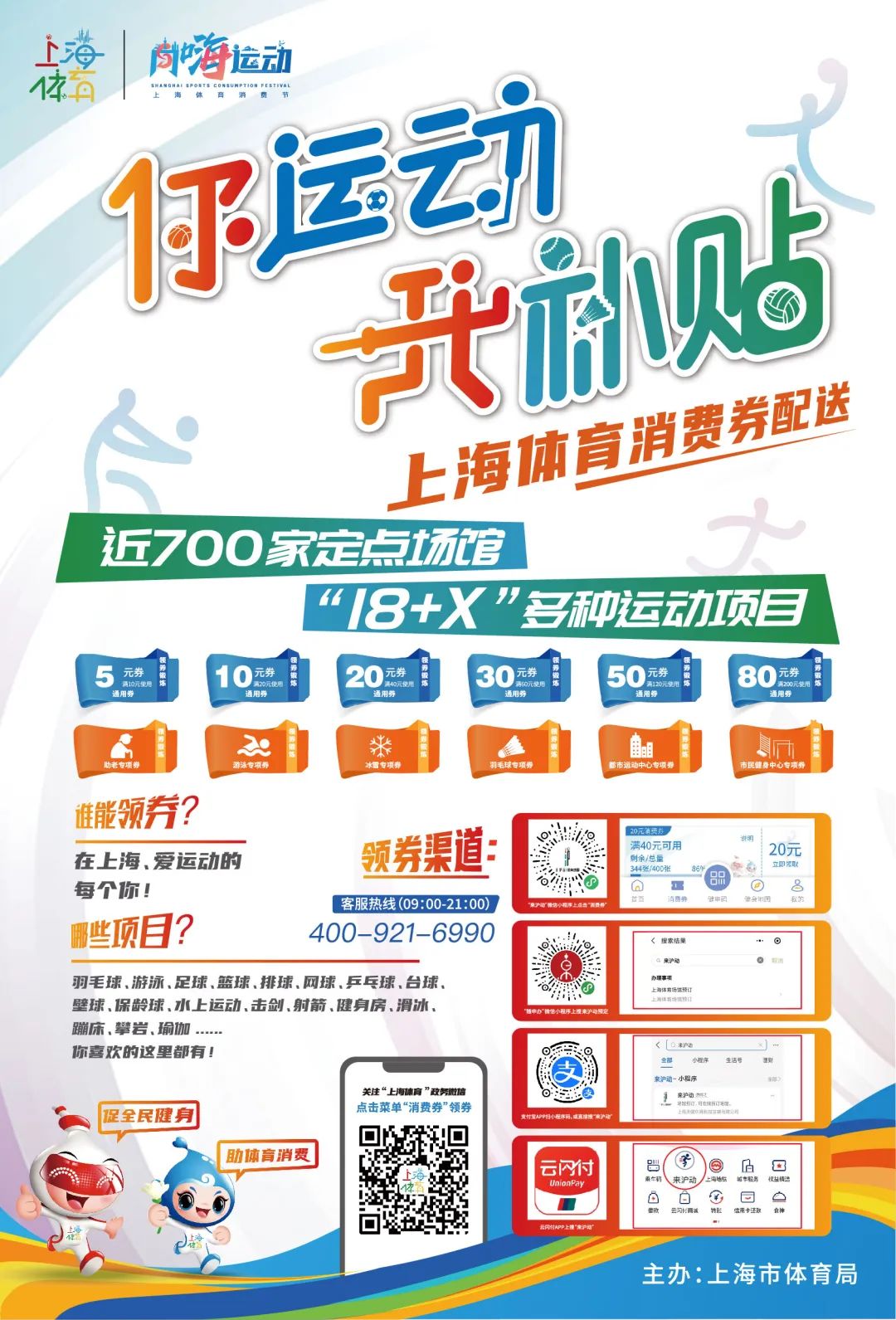 仪式当天,上海正式启动了新一轮体育消费券配送,全年安排资金4000万元,继续推进“你运动、我补贴”的惠民措施。上海市体育局将与携程集团共同打造“体育+旅游”一站式产品,与中国银联上海分公司、中国工商银行上海市分行联手打造一系列“体育+商业”的主题消费场景、主题营销活动。