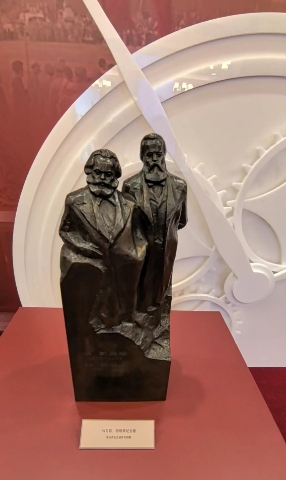 中共一大纪念馆陈列研究部主任、策展人张玉菡表示,展览采用大量多媒体技术,表现在城市发展、生态、科技等方面的卓越成就。尾厅创意设计巨大时针造型的艺术装置,摆放马克思、恩格斯雕塑,观众可以在此与马克思、恩格斯合影,在穿梭的时空中,感受200年前马克思为人类幸福生活的理想与今日生活的巨大变化,为奔赴更加美好的明天而努力奋斗。
