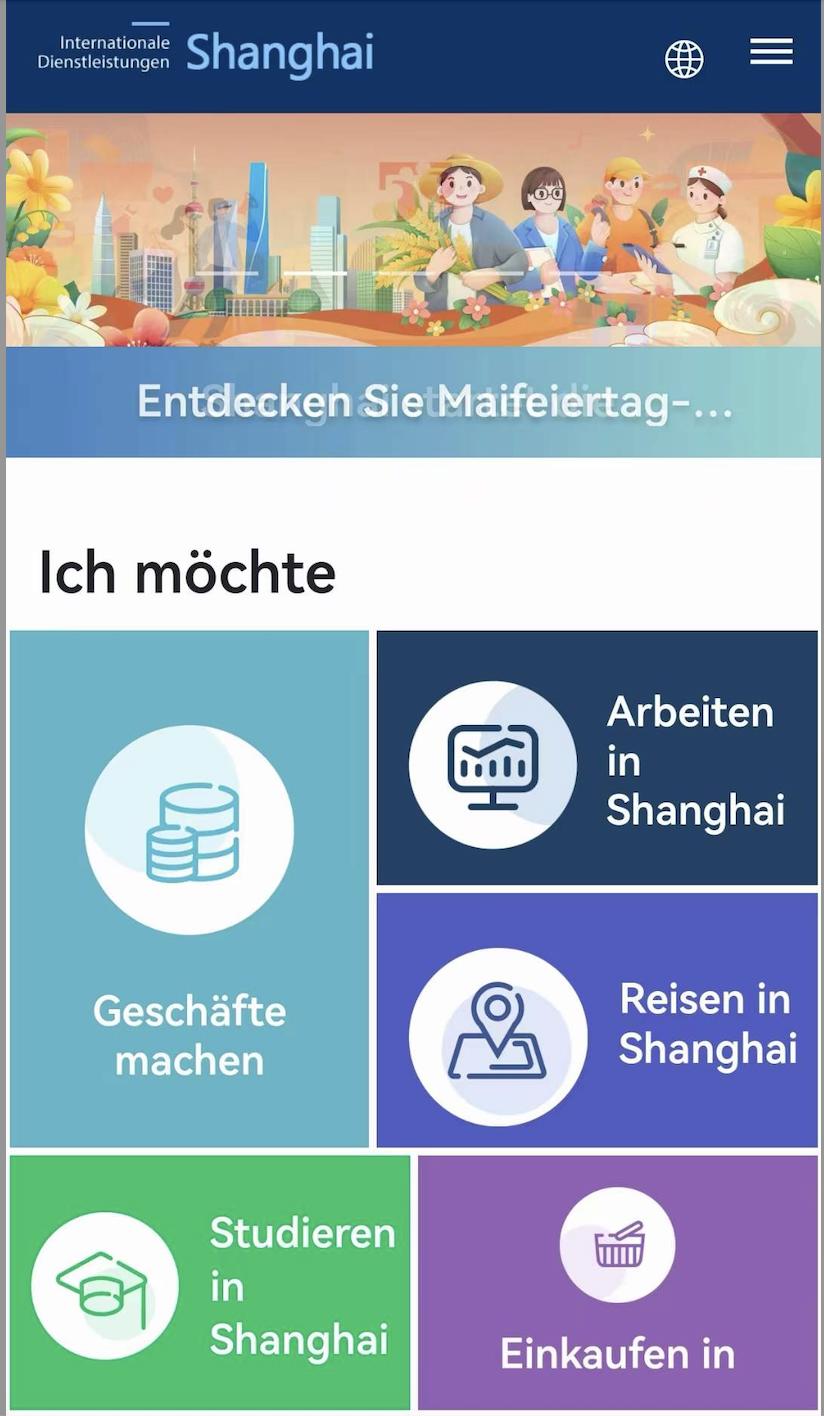日前,“上海国际服务门户(International Services Shanghai)”英语、日语、韩语、德语、法语、西班牙语、葡萄牙语、俄语、阿拉伯语等9个语种版本已经上线,境外人士可以点击网址https://english.shanghai.gov.cn/进入,选择相对应语种了解资讯。