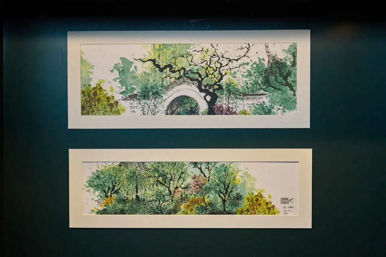 “繁华与文艺”板块则通过笔墨勾勒出繁华又不失文艺的上海轮廓。摩登有腔调的淮海中路、因《繁花》爆火的黄河路、巷弄藏匿浪漫的淡水路……在艺术家笔下展露出或清新、或张扬、或梦幻的别样风情。