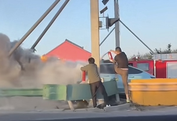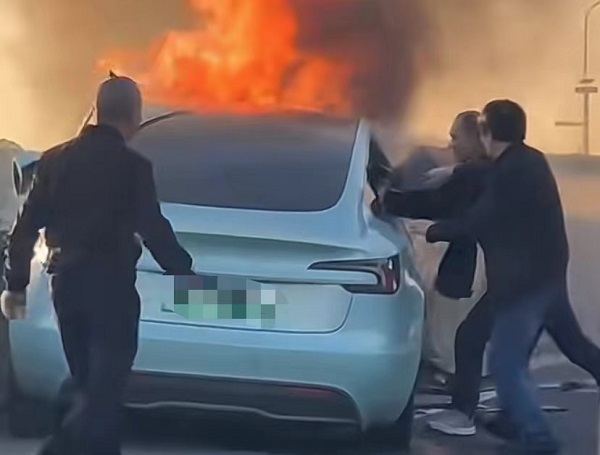 新能源车高速撞击起火 热心市民帮忙救火救人