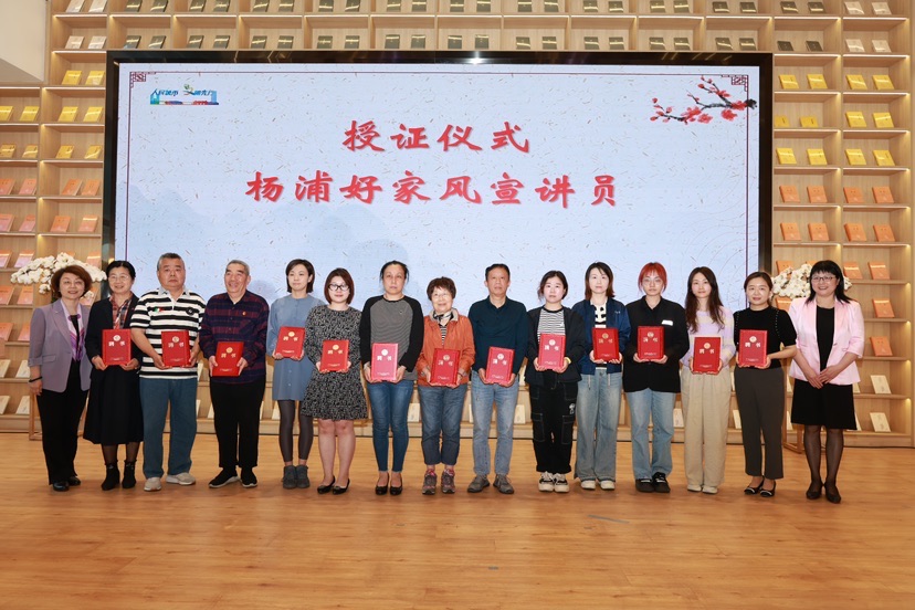 2024年度“杨浦好家风”宣讲员获颁证书。这些宣讲员将肩负起传承和弘扬良好家风的使命,走进社区、单位、学校,用他们的亲身经历和感悟,讲述更多文明家庭的先进故事,将良好的家风“送”达居民“家门口”、白领“楼门口”、学生“校门口”。