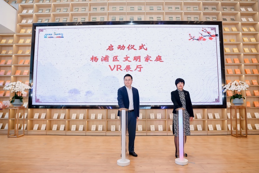 活动在杨浦区委副书记周嵘、杨浦区政协副主席顾登妹的共同见证下拉开帷幕。按钮启动后,杨浦区文明家庭创建VR展厅正式亮相。参观者通过虚拟现实技术,仿佛穿越时空,领略近年来杨浦区文明家庭的先进事迹和古代家风故事的厚重底蕴。