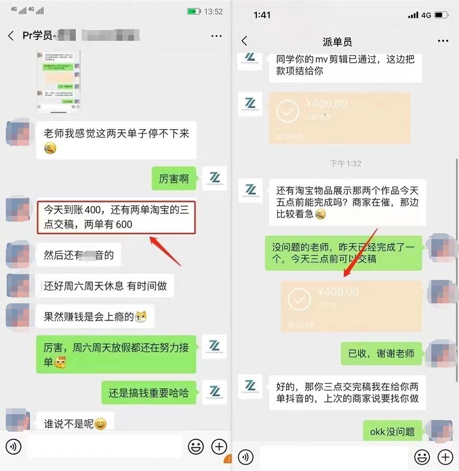 客服发来的“成功案例”显示,某初中学历的学员在学完课程后成功接到大学生毕业设计订单,仅耗时半小时就获取报酬420元;某在职老师学员利用周末休息日兼职接单,轻松月入3000元。