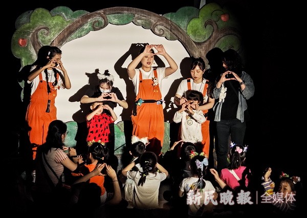 图为“走进光影”沉浸式新空间体验剧现场,家长和小朋友与光影艺术来了一次零距离接触