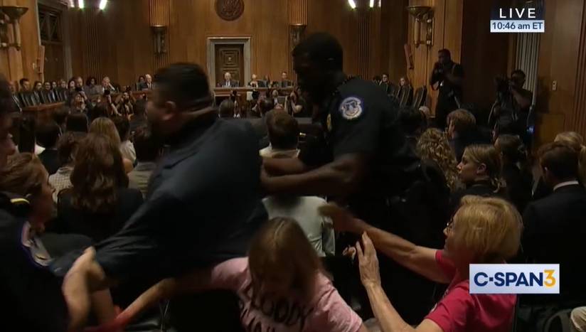 抗议活动组织方“粉红准则”(CODEPINK)称,该组织多名成员被捕,且多人因警察粗暴对待而受伤。据介绍,“粉红准则”是美国女权主义组织,致力于支持和平与人权、结束美国战争和军国主义。