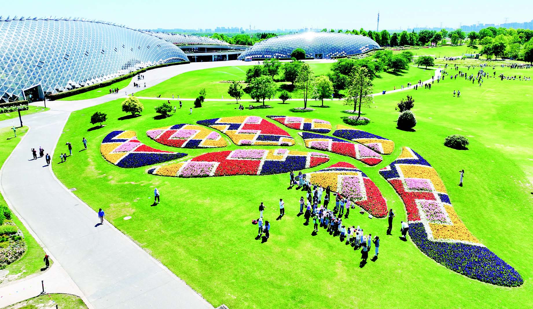 本季“辰山印象”花坛另一大看点在于,利用不同品种花卉的高低差,将平面花坛“立体”化,形成一个个立面也具有观赏性的立体图案,给予游客花坛、花境赏花“双重”体验。