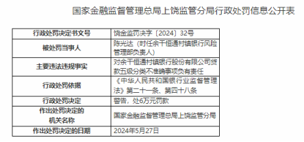 因贷款五级分类不准确等,余干恒通村镇银行被罚70万元