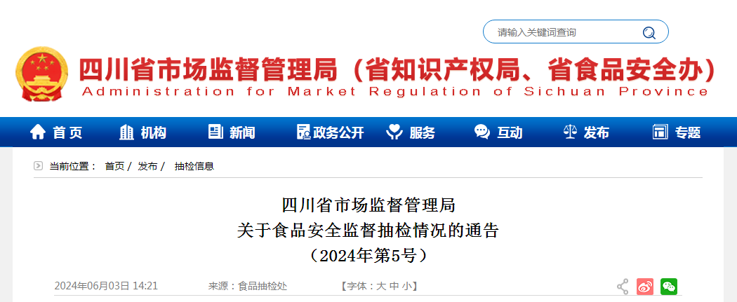 四川省市场监督管理局关于食品安全监督抽检情况的通告(2024年第5号)