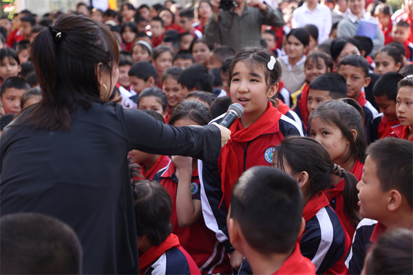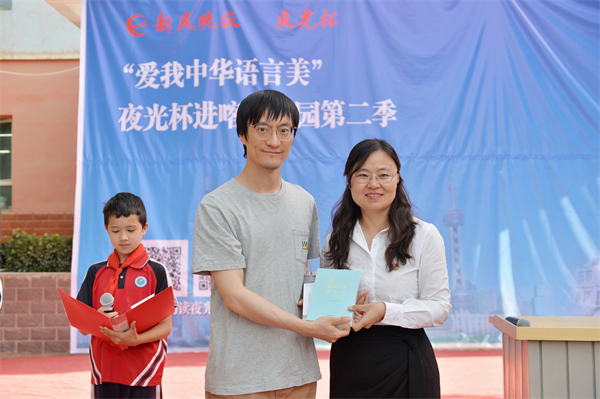 殷健灵代表“夜光杯”送给这些可爱的孩子们三句话:“拥抱童年,憧憬未来”“了解自己懂得爱”“好书相伴,润泽心灵”。