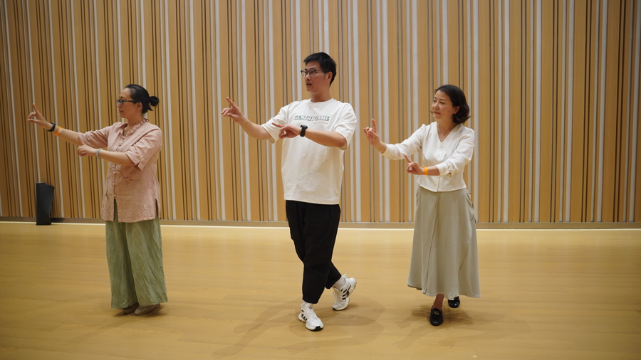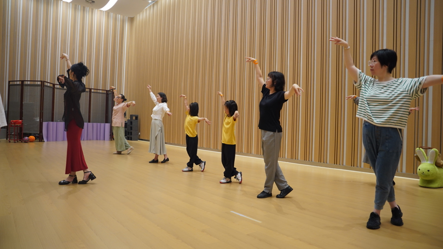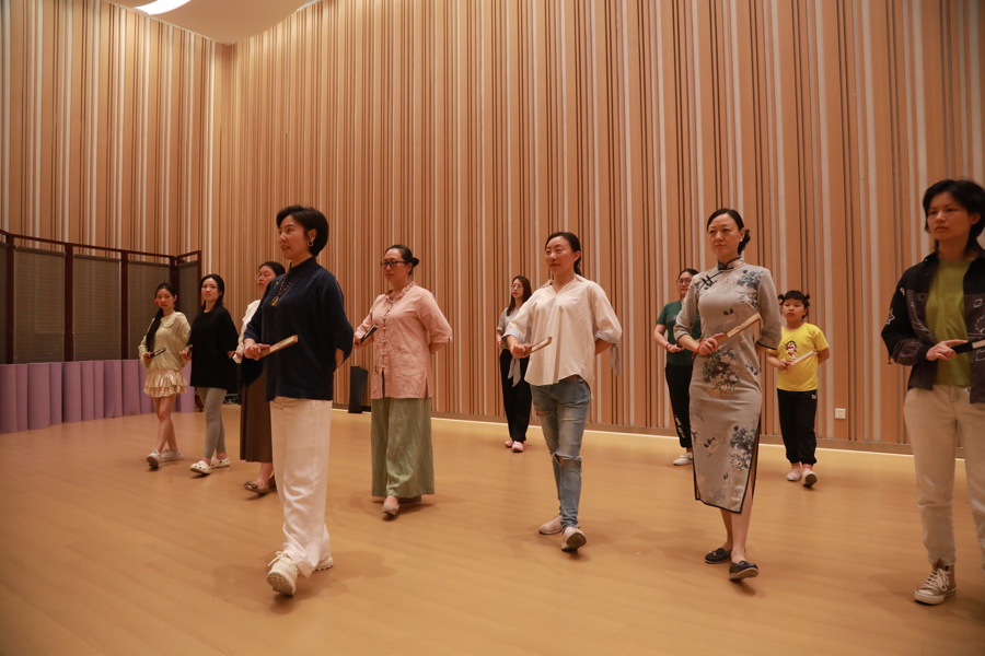 在“戏曲初体验”环节,市民跟随戏曲演员练习京剧身段、了解沪剧的历史渊源、学习越剧小生的折扇功法。在“律动昆韵”打击乐互动秀,上海昆剧团国家一级演奏员高均以手碟为媒,与典雅婉转的昆曲节奏交融,带来别样的听觉盛宴。