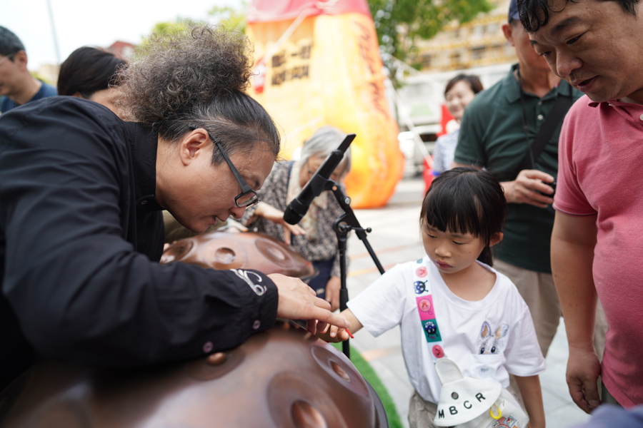 上海昆剧团国家一级演奏员高均以手碟为媒,与观众交流