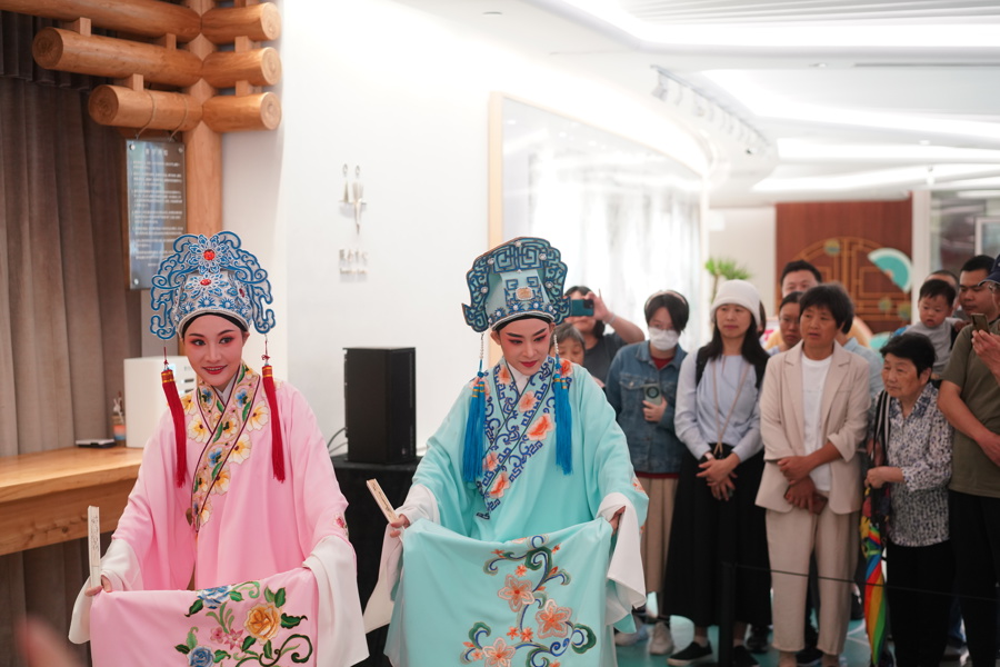 “国潮戏韵”戏曲演出实现非遗艺术和国潮文化的“双向奔赴”。6家国家级非物质文化遗产名录项目保护单位的戏曲名家代表陈少云、沈仁伟、梁伟平、王志萍、高博文、沈昳丽集体亮相,六个剧种的经典演绎、跨界融合,把游园会的气氛推向高潮。
