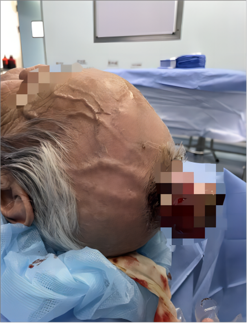 手术后,老人头顶部的“大蘑菇”被切除。
