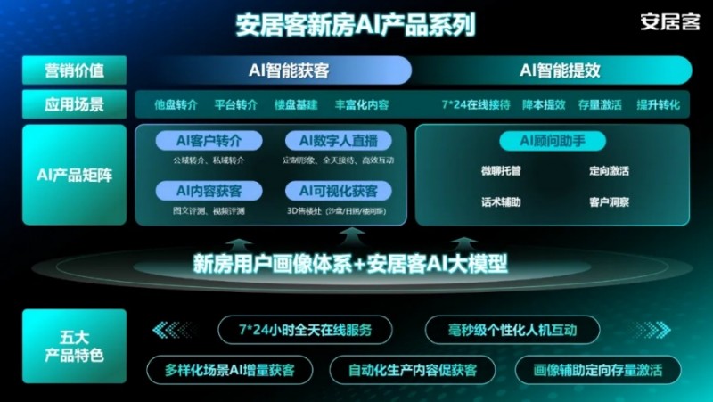 2024年,安居客推出了全新的AI产品系列,核心包括AI智能获客和AI智能提效两大板块。此次与华润置地的合作,安居客将充分发挥自身在AI、大数据等技术领域的优势,为华润置地提供全方位的线上数智营销服务。