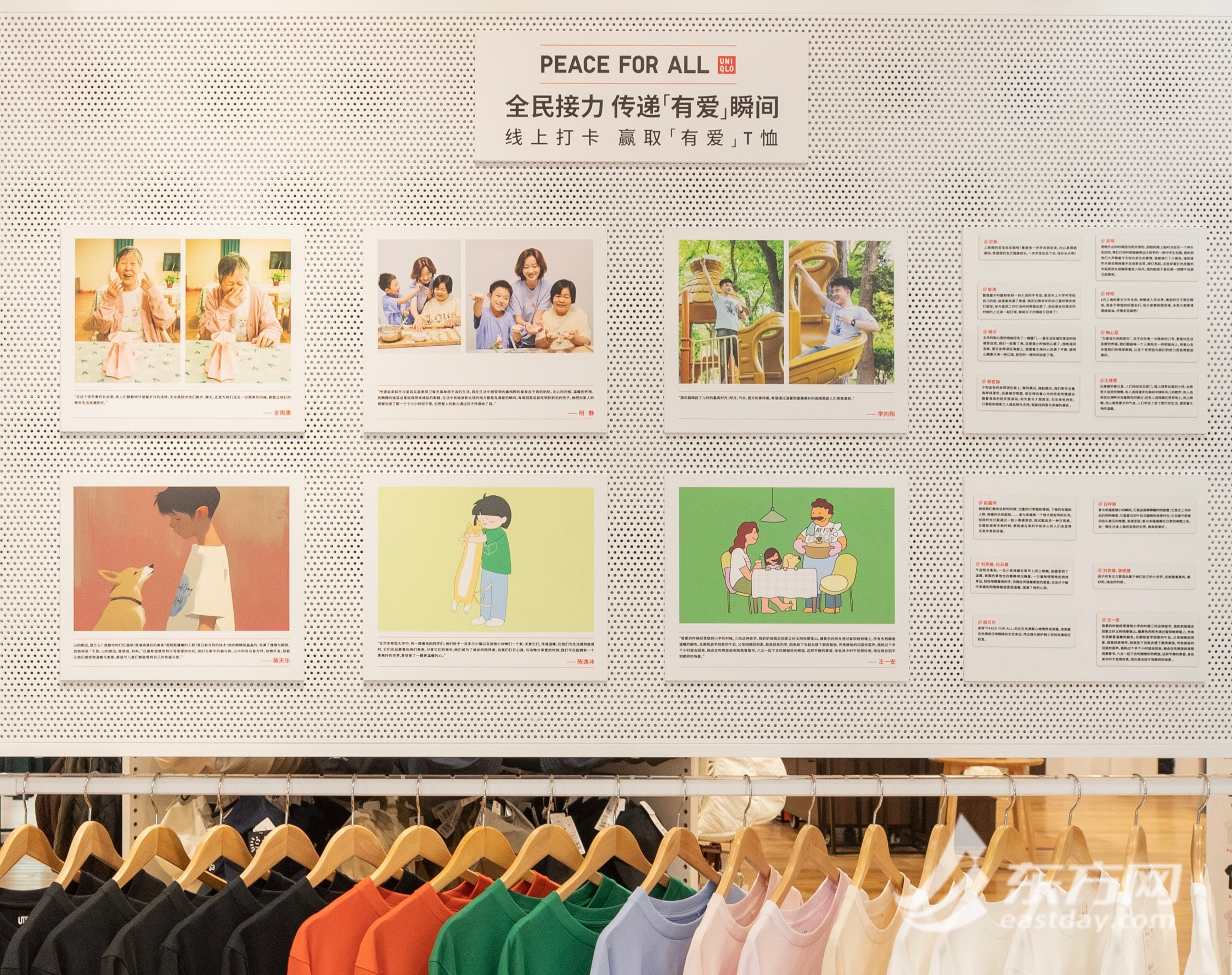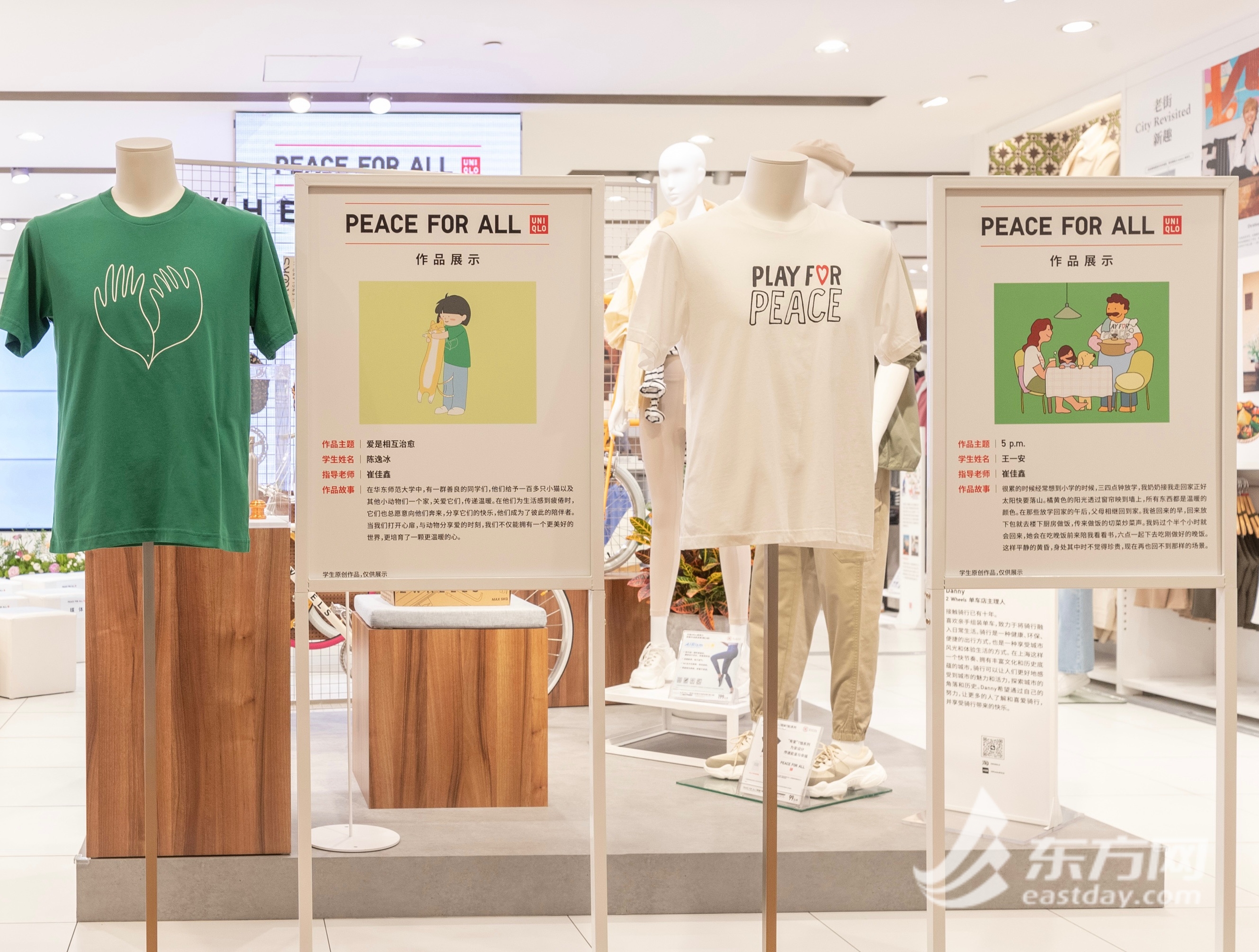 东方网记者范易成6月21日报道:一件“有爱”的服装如何跨越地域、年龄与文化的界限,成为传递能量与幸福的载体?记者获悉,近期,优衣库携手华东师范大学设计学院,围绕「PEACE FOR ALL」“有爱”的T恤项目,鼓励学子将爱的理解融入创作中,分享和表达生活中的“有爱”瞬间,为爱发声。6月21日,“全民接力,传递‘有爱’瞬间”分享会在优衣库上海淮海路全球旗舰店举行,多位学生现场分享了创作的心路历程。据悉,由学生们创作的插画、摄影等作品将于6月21日至7月18日在店内展出。 据了解,「PEACE FOR ALL」“有爱”的T恤项目2022年6月正式启动,邀请来自世界各地的艺术家、设计师等为爱设计,表达对世界和平的美好祈愿。系列产品自上市以来,在全球范围内热销超过400万件,其部分销售收入用于捐赠给祝愿和平的团体组织,捐款总额超760万美元。今年,在「PEACE FOR ALL」项目两周年之际,优衣库推出3款全新设计,并首度邀请了中国艺术家韩美林加入创作。韩美林带着“爱”的心看世界,设计了代表希望与和平的白鸽与橄榄枝图案。