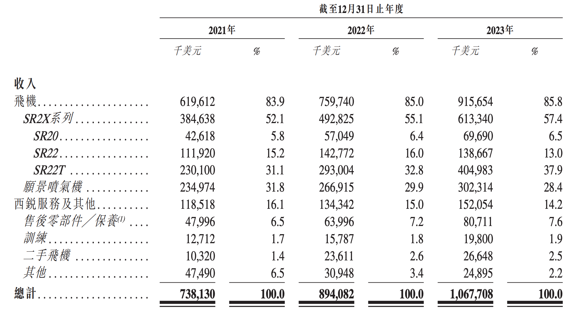 西锐飞机在全球范围内销售及交付,售价介于62.69万美元至324万美元。值得注意的是,飞机平价售价已有所上涨,2023年6月首次提交的招股书中显示,飞机售价约50万美元至约330万美元。
