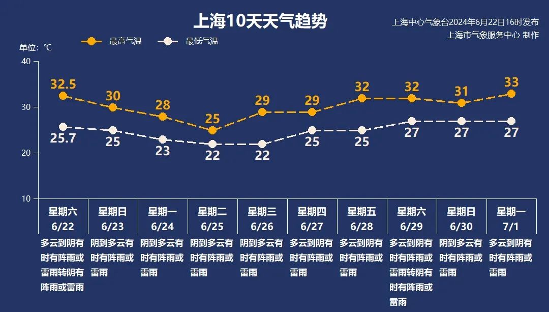 上海明天的气温仍在高位,全天25℃-30℃,西到西南风4-5级,雷雨时阵风7-9级,风向偏北。相对湿度95%-70%,体感闷热难耐,继续注意防暑防潮。