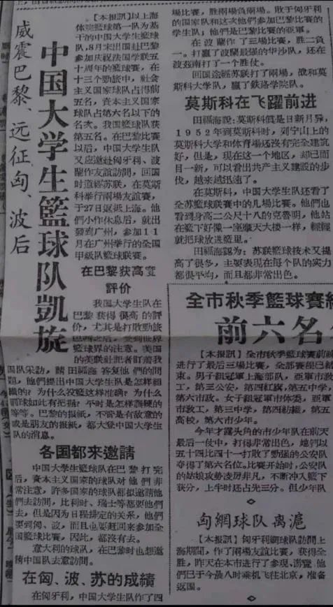 体“谈”记忆|上世纪五十年代,上海有一支篮球队远赴巴黎为国争光