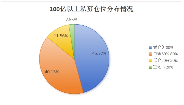 近九成百亿私募仓位超50%。私募排排网数据显示,截至6月14日,满仓100亿以上私募占比达45.77%,中等仓位股票私募占比为40.13%,低仓股票私募占比为11.56%,空仓股票私募占比为2.55%,近90%的100亿以上私募仓位超5成。较上周相比,满仓100亿以上私募占比提升了5%,而中等仓位、低仓位以及空仓位100亿以上私募占比均有下降。
