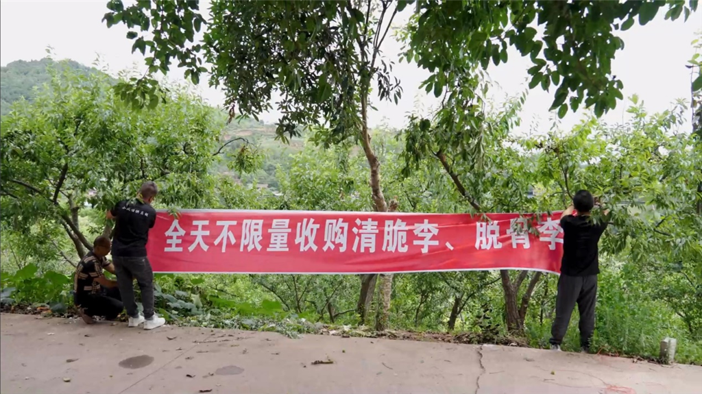 去年,有媒体还因此专门采访刘照东,“视频画面露出了我的横幅,结果我的电话很快被打爆了,全国各地的农户都喊我去收李子”。
