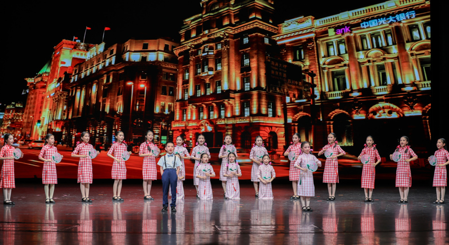 金山区第一实验小学学生表演沪歌《上海谣》。