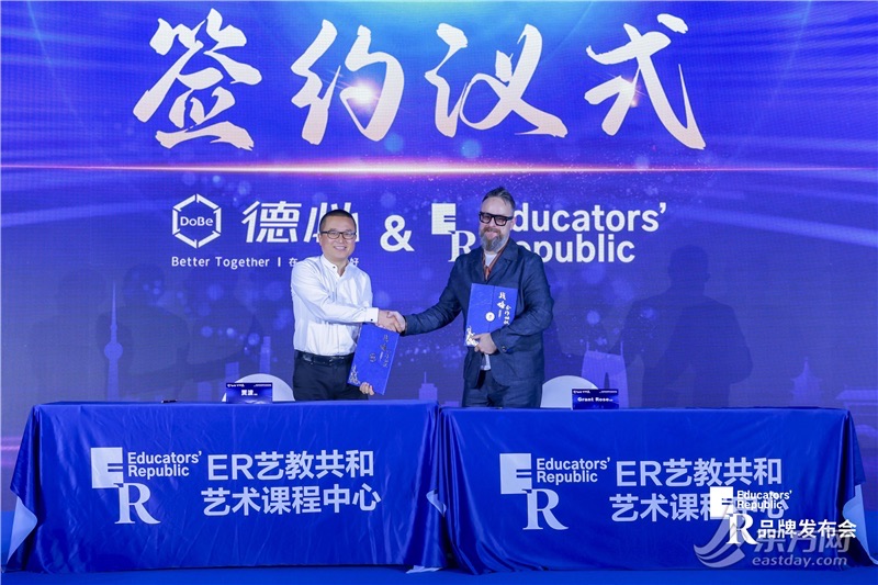 发布会上,ER艺教共和课程中心与多所知名国际学校共同启动了“ER艺教战略联盟”。这一联盟的成立将为联盟校提供丰富的国际艺术资源和前沿资讯,以及海外优质艺术大学的升学服务,师资培训和跨校交流等支持。 德必集团副总裁上台分享了德必在文科创产业领域的成就与海外布局经验。她提到,德必已在美国硅谷、意大利佛罗伦萨等地拥有众多成功案例,并致力于成为中国文科创产业全价值链的领军服务商。此次与ER艺教共和课程中心的合作意向,是德必集团未来海外战略的重要组成部分,也是对中国艺术教育事业国际化发展的有力支持。她期待双方能携手共进,共同打造一流的海外艺术教育平台,为中国艺术教育事业的国际化发展注入新的活力与动能。 德必集团董事长贾波与ER艺教共和课程中心联合创始人兼学术总监Grant教授共同签署了合作意向书,标志着双方在艺术教育领域达成深入探索与合作的共识。作为合作内容之一,双方计划在英国伦敦共建艺术教育孵化器,旨在结合德必集团在海外文科创园区的成功经验和ER艺教共和课程中心在艺术教育的优势,双方共同打造为海外艺术留学生和工作者提供就业机会、创业场地等全方位支持的平台,以此推动中英两国在文化创意领域的交流与合作。