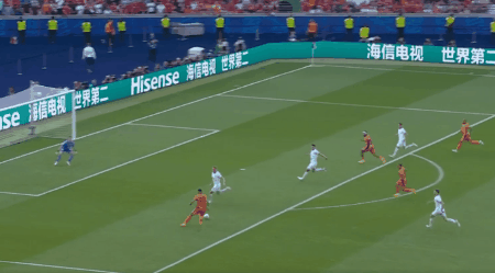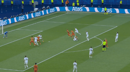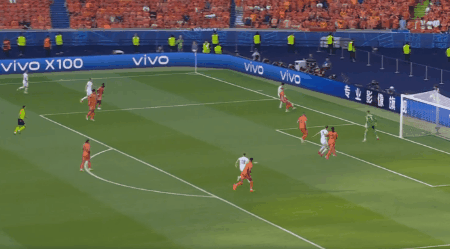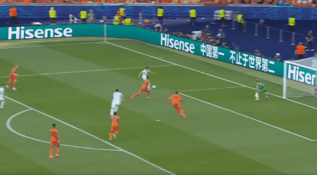 第75分钟,加克波左路传中,韦霍斯特头球摆渡,德佩凌空抽射破门,再度帮助荷兰扳平比分。