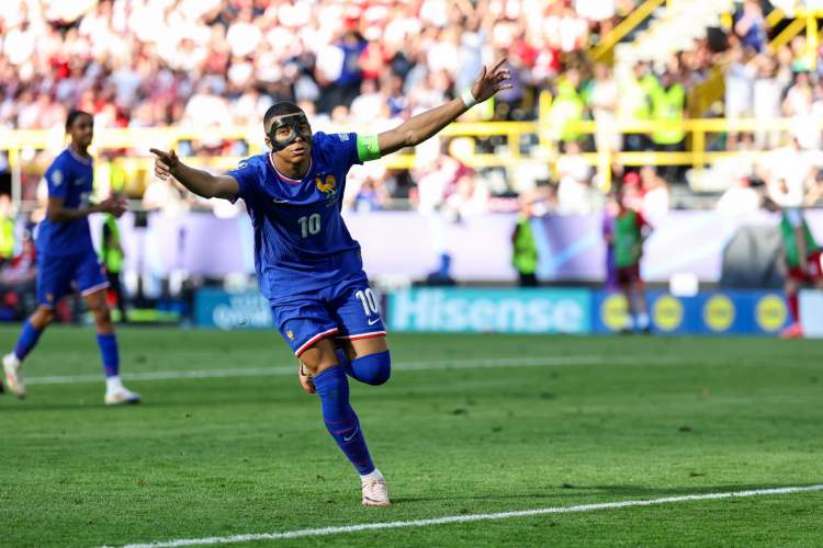 第56分钟,斯利什在禁区内对登贝莱犯规,姆巴佩点球一蹴而就,法国队1比0领先。这是姆巴佩个人欧洲杯的首粒进球,法国队也随之升至小组第一。