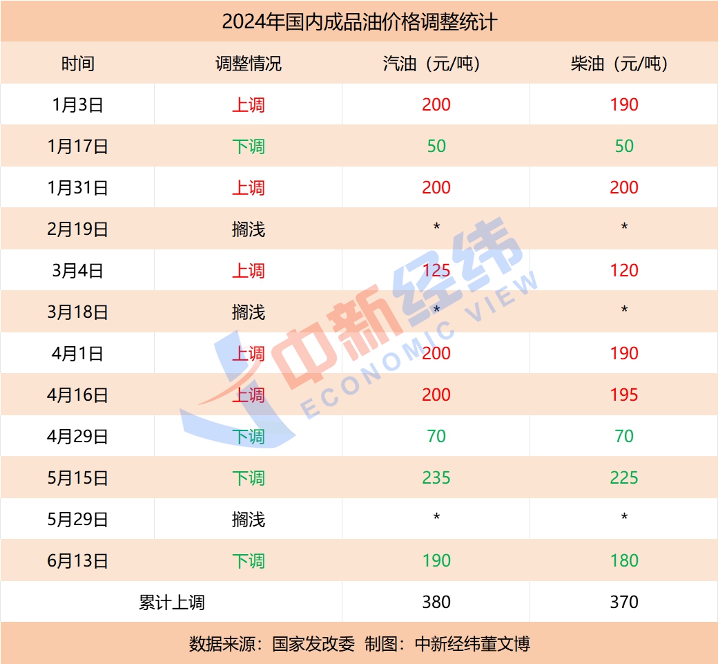 今年以来,国内成品油价已经历十二轮调整,呈现“五涨四跌三搁浅”格局,涨跌互抵后,汽、柴油标准品分别累计上涨380元/吨、370元/吨。若本轮调价落地,年内成品油价格调整将呈现“六涨四跌三搁浅”格局。