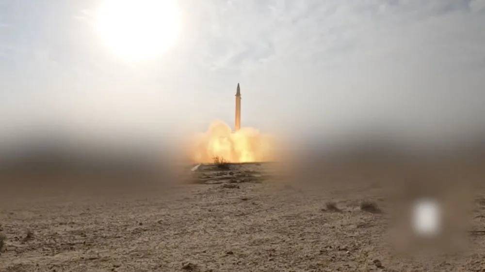 ▲6月26日胡塞武装公布的视频截图显示,胡塞武装在不明地点发射导弹。新华社发