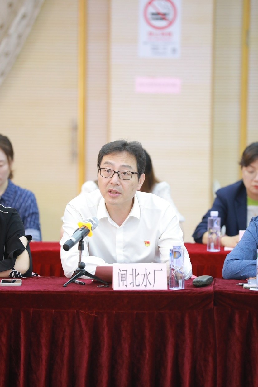 在互动交流与主旨发言环节,闸北水厂党支部书记、工会主席施红文就“践行人民城市重要理念,把市民对高品质饮用水向往作为奋斗目标”作了交流。