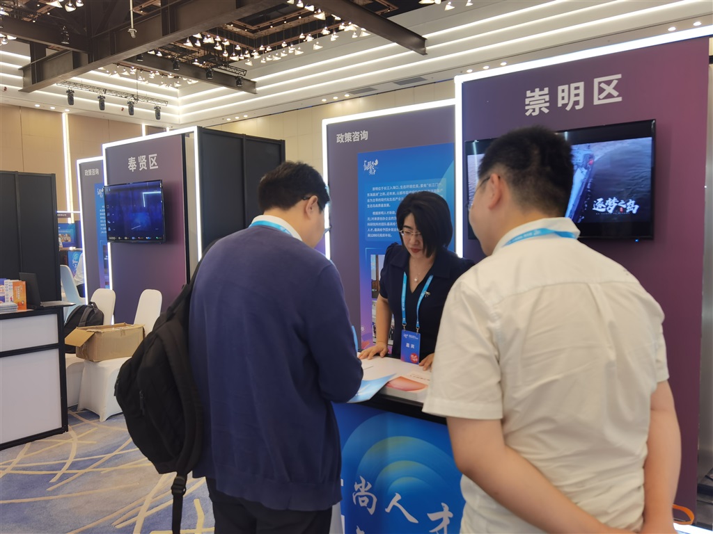 大赛首次在复赛现场设置展示区,通过图文展板集中展示上海16个区及临港新片区的人才引进计划、人才政策、产业政策等,同时安排工作人员开展现场咨询,为各位参赛选手和人才答疑解惑。