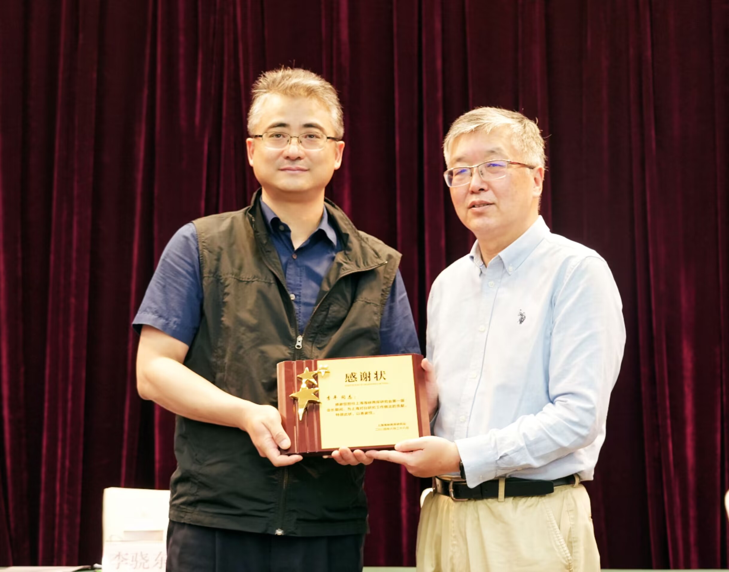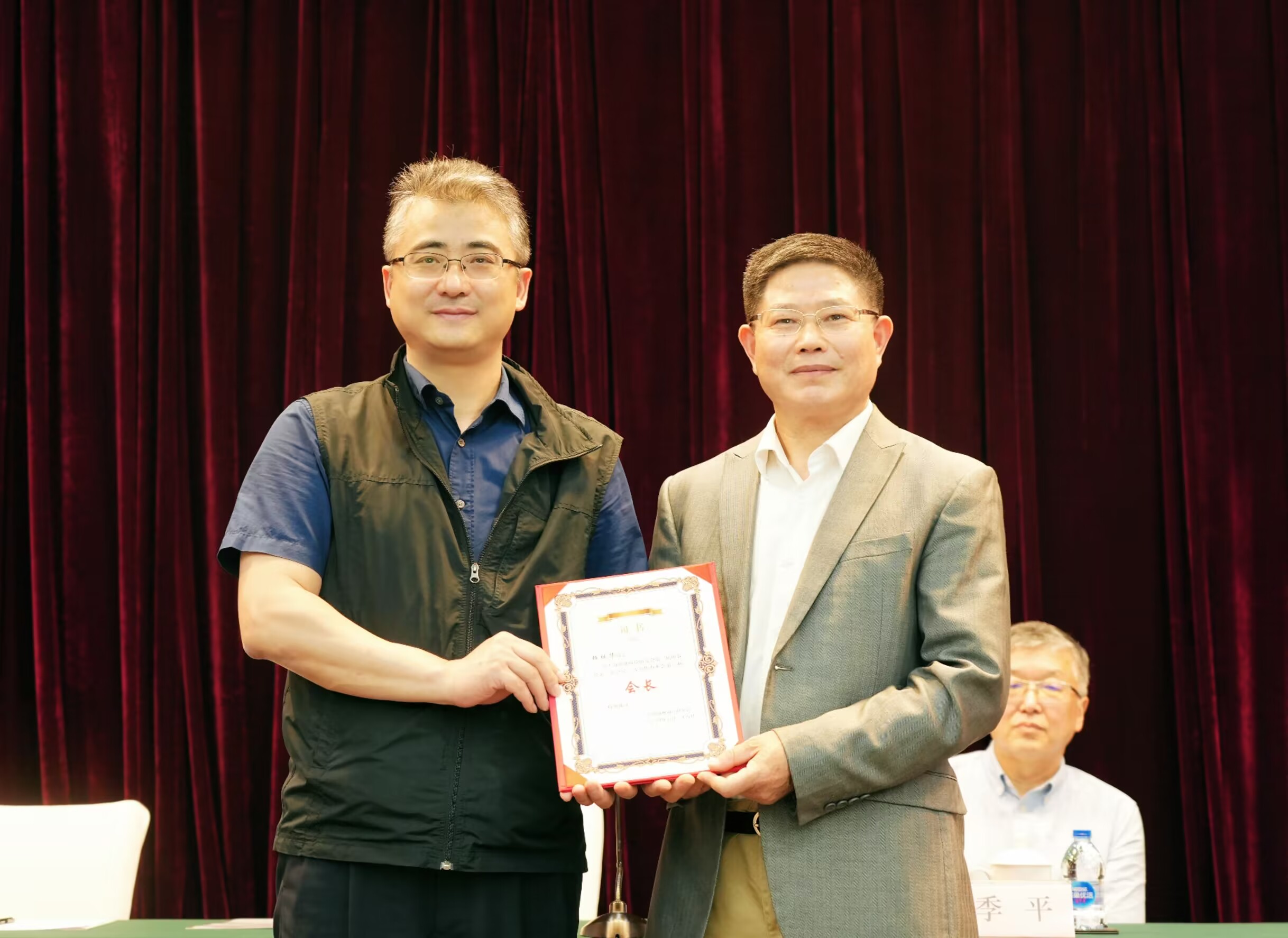 李骁东副主任向第一届会长季平颁发感谢状,并向第二届会长顾祖华颁发当选证书