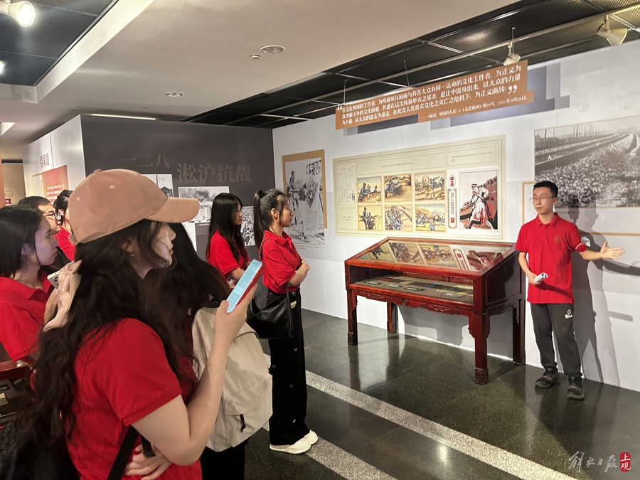 华东师范大学马克思主义理论专业学生担任展览讲解员。施晨露摄