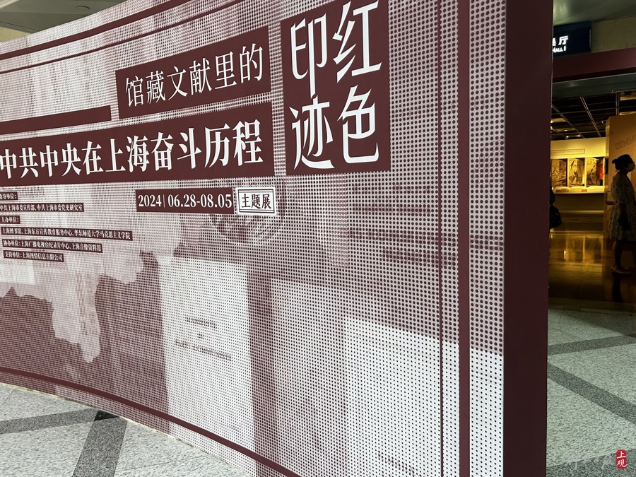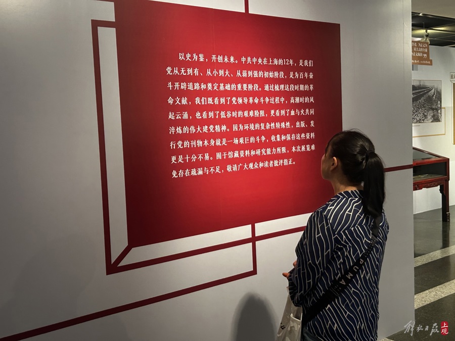 “红色印迹——馆藏文献里的中共中央在上海奋斗历程主题展”在上海图书馆展出。施晨露摄