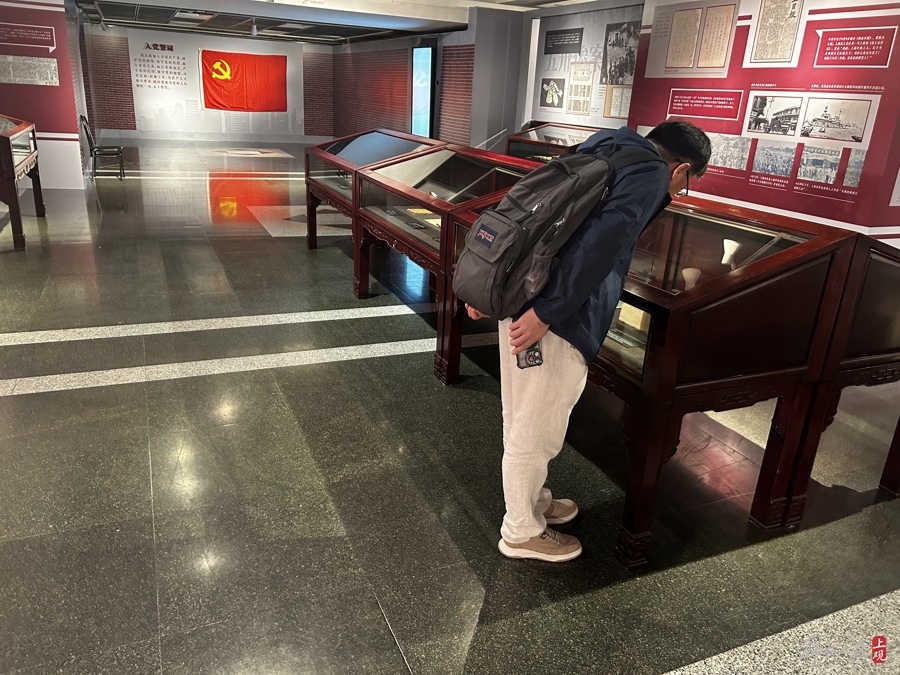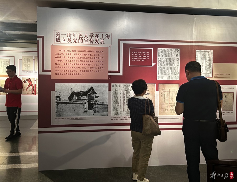 华东师范大学马克思主义理论专业大三学生柴宇川与19名同学报名担任此次展览讲解员。开幕首日,几乎所有同学都到了现场,彼此做第一批听众,为之后的讲解“练兵”。负责“推动大革命走向高潮”板块的柴宇川说,在学校里做过一个小课题“1920-1927‘生活化’视域下马克思主义在上海工人中的传播与红色遗址的调查利用研究”,走访过顾正红纪念馆和沪西工友俱乐部、沪西工人半日学校等红色遗址,“当时的共产党人非常注重在生活化的场景下发动工人,把工人聚在一起聊天、下棋,大家更能接受马克思主义思想。上海的红色文化氛围浓厚,在社会实践中为红色文化传播尽一份力,是今天青年学子的责任所在。”