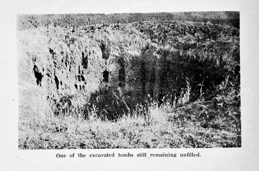 “民国十七年,(金村)以遭霖雨,忽然地陷。据推测下有古墓,有人商得地主许可后,即试行发掘。旋因种种困难遂将土完全移去,该处成一四十呎深之大方穴,穴底四隅之原土未去,因以渐倾斜而下,故墓底约略成一八角形。”