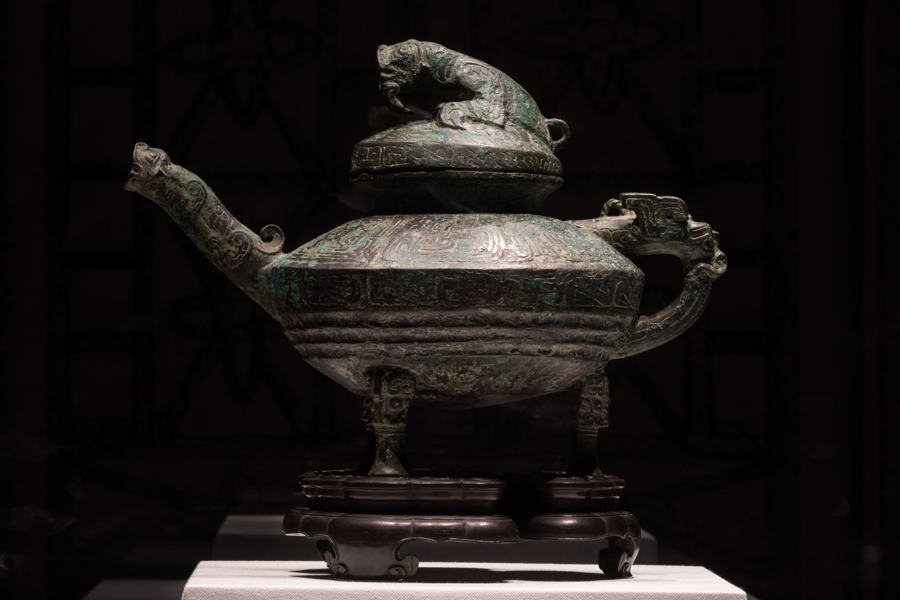 圆明园流散文物青铜“虎鎣”在中国国家博物馆展出(范立摄影)