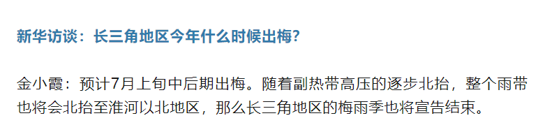江苏省气象台首席预报员金小霞:长三角地区预计7月上旬中后期出梅