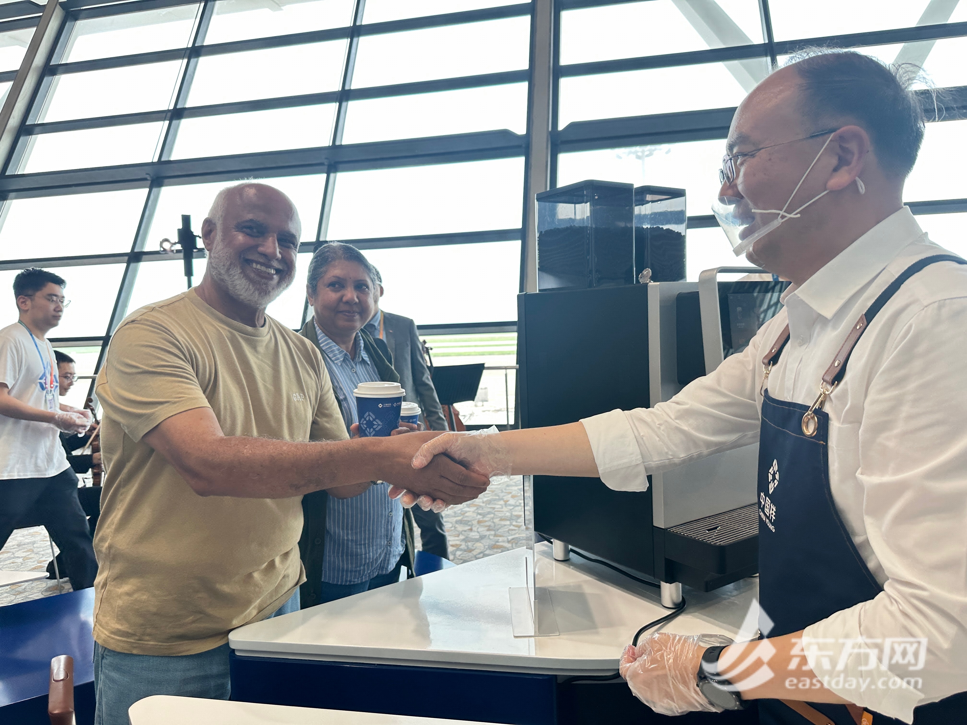 起飞前来杯咖啡是不少旅客的选择。为推广上海机场咖啡文化节,在浦东机场2号航站楼旅客候机区域,上海机场集团党委书记、董事长秦云,上海机场集团党委副书记、总裁冯昕,上海机场集团党委副书记、工会主席张永东以志愿者身份,亲手制作AVINEX甄选咖啡,向中外旅客送上来自上海机场的问候。值得一提的是,当天,上海浦东机场、虹桥机场内所有的咖啡店铺,每逢第10单咖啡,即由上海机场买单1杯赠送旅客。不少幸运旅客纷纷拍照打卡,记录这一幸运时刻。