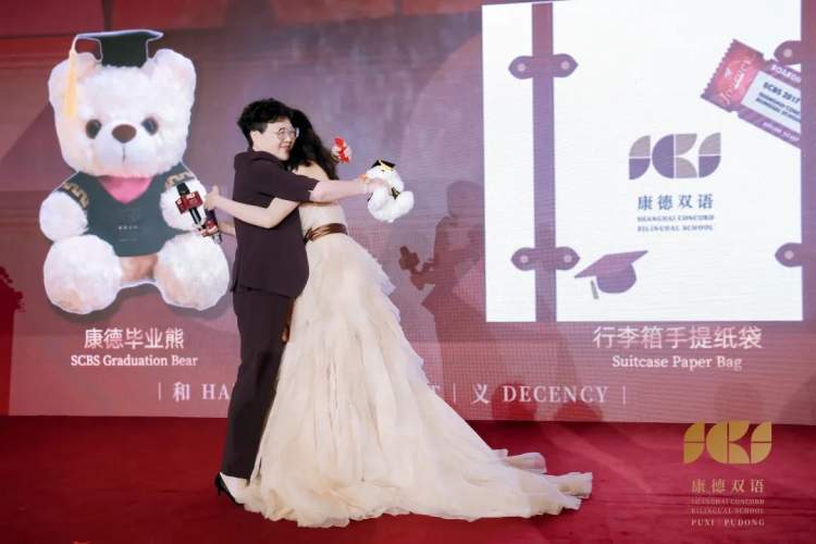 毕业典礼上,康德双语党支部书记兼副校长潘文光老师介绍了学校为毕业生们精心准备的礼物——一个姓名定制的品牌行李牌和一只印有康德logo的毕业熊。这两件礼物寓意深远,承载着学校的期望与祝福。