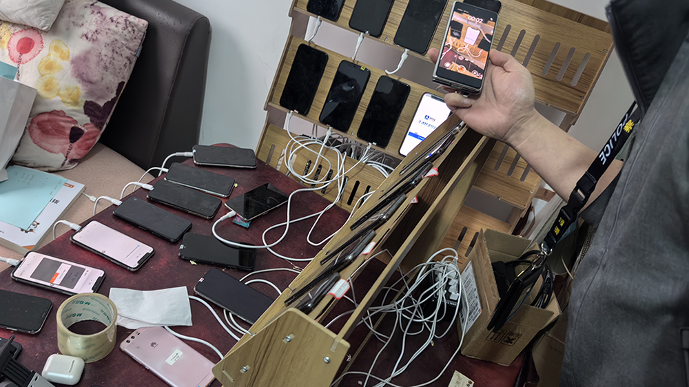 民警现场查获用于“刷单”的手机。上海长宁警方 供图